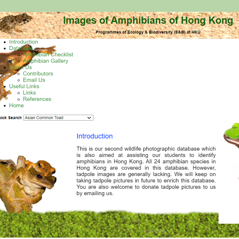 此資訊站的物種數據庫提供主要類別的物種的資料,唯未有介紹部份物種 如蜘蛛、大部份昆蟲等